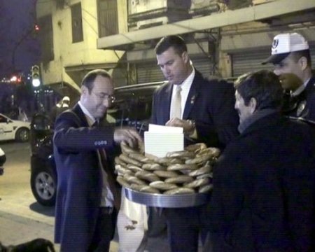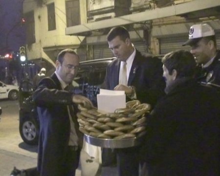 Patrikhane önünde bekleyen ABD’li korumalar, seyyar simitçinin yanına giderek çok sayıda simit aldı. Simitleri bir poşete dolduran korumalar, araçlarına bindi.