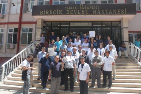 Birecik Sağlık-Sen İlçe Temsilcisi Halil Arslan ise yaptığı basın açıklamasında şunları dile getirdi: “Türkiye bugün ekonomisi iyi yolda bütçesi büyüyor, pastası büyüyor. Dün kriz vardı, bu krizde memura dediler ki sabırlı ol dünya yanıyor, Türkiye yanıyor. Sermaye sahiplerine ne dediler, ne istiyorsun kardeşim? Elimde ürettiğim mal var, ÖTV indirimi yaparsanız bütün arabalarımı satarım dediler. Yüzde 8 ÖTV indirimi yapıldı. Sermaye bir kuruş indirim yaptı mı? Yapmadı. Son 5 yılda batan banka görmediğim gibi kar marjıyla hava atmayan banka da görmedim. Şimdi kriz varsa bankacıyla biz aynı ülkede yaşıyoruz, bedeli birlikte ödeyelim. Kriz bitti, büyüdüysek o büyümeden payı görelim. Enflasyona ezdirmediler, evet ama bir sefer de enflasyonu biz ezelim." CİHAN