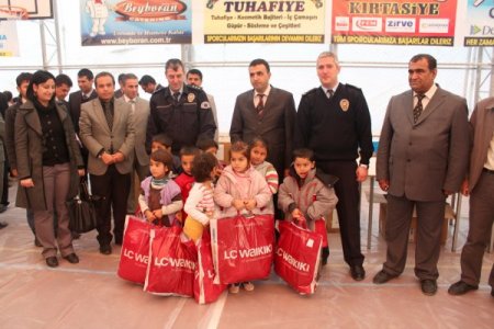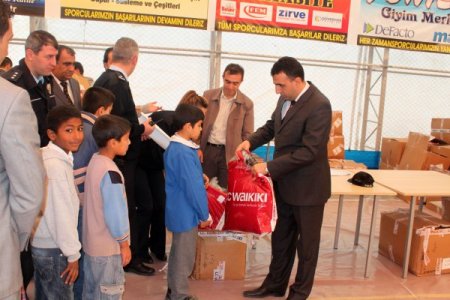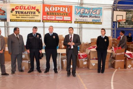 Okul öğrencileri arasında ayakkabısı olmayıp kışın başladığı bu günler de terlik ile hediye paketlerini almaya gelen öğrenciler gözden kaçmadı. Öğrencilerin hediyeleri İlçe Kaymakamı Oktay Erdoğan, İlçe Emniyet Müdürü Vekili Barış Ertuğrul, Milli Eğitim Şube Müdürü Sadık Şahin, okul müdürleri, öğretmenler ve polisler tarafından verildi. Hediye paketlerinin öğrencilere dağıtılmasından sonra program sona erdi.