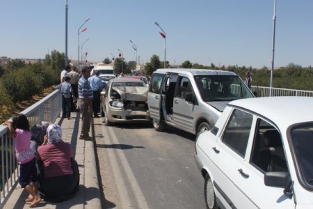 Birecik Köprüsü üzerinde aniden durduğu iddia edilen bir otomobilin arkasından gelen 63 LS 269, 33 R 2325, 27 NE 418, 27 DA 036 plakalı araçlar birbirine çarptı. Birecik Emniyet Müdürlüğü'nün geniş güvenlik önlemleri aldığı kazada, trafik bir süre her iki yöne kapatıldı. Kazada ağır hasarlı arabalar oto kurtarma aracı tarafından kaldırılarak yol trafiğe açıldı.
