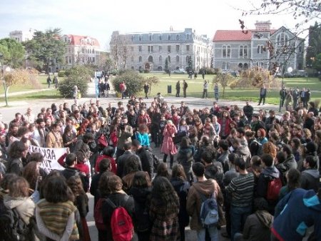 Üniversitenin güney kampüsünde toplanan yaklaşık 100 kişilik grup, arkadaşları Şeyma Özcan'ın gözaltına alınmasını protesto etti. Özcan'ın anne ve babasının da katıldığı eylemde öğrenciler, halay çekip şarkılar söyledi. Bir süre slogan atan öğrenciler, kampüs içerisinde dolaştı.