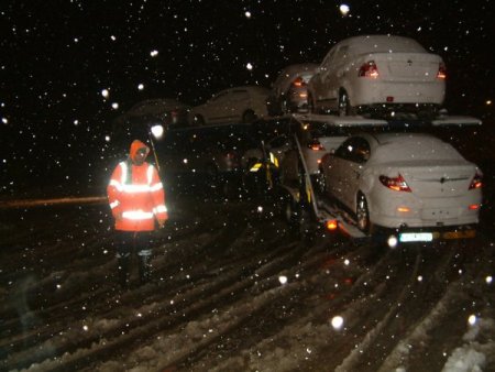 Düzce’de kar yağışı nedeniyle D-100 karayolu Bolu Dağı Ankara istikameti araç trafiğine kapandı. Zincirsiz araçların trafiğe çıkmasına izin verilmiyor.