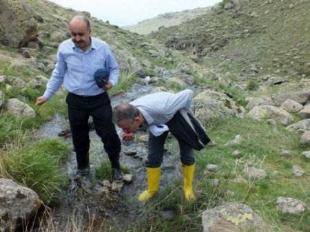 Bor Belediye Başkanı Sıtkı Erat, doğal kaynak suyu için bin 500 metre yükseklikteki Okçu Dağı zirvesine yürüyerek çıkarak, Okçu suyunu kaynağında inceledi.