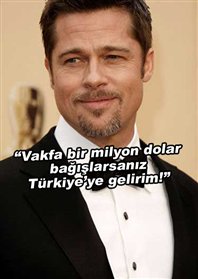 Bu yıl ilki düzenlenecek Çanakkale Troia Film Festivali'ne davet edilen Brad Pitt, karşılığında Angelina Jolie ile kurduğu vakfa bir milyon dolar bağışlanmasını istedi. Takvim gazetesinin haberine göre Pitt'in Türkiye'ye gelmesi için Devlet Bakanı Egemen Bağış ile Kültür ve Turizm Bakanı Ertuğrul Günay çağrı yaptı.Dünyaca ünlü aktörün ülkemize gelmesiyle Türkiye'nin reklamı olacağını savunan Günay, "Festivale sponsor olacak firmalar bu konuda destek olmalı" dedi. 1 hafta içerisinde tamamlanacak olan görüşmeler sonrasında Brad Pitt'in ülkemize gelip gelmeyeceği belli olacak.