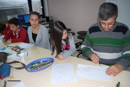 Yetişkinler dahil dört grup halinde, toplam 38 öğrencinin devam ettiği karikatür kursları, Nilüfer Belediyesi Beşevler Gençlik Merkezi çatısı altında gerçekleştiriliyor.