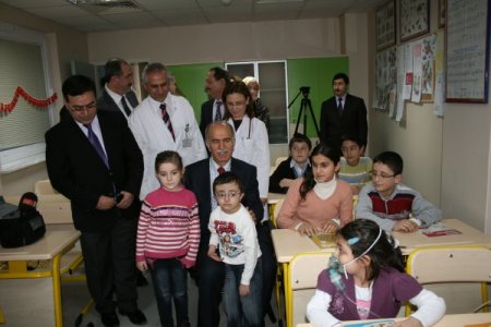 Hastane Başhekimi Mehmet Karadağ ise 12 öğrencisi bulunan bir sınıfta iki öğretmenle eğitim verdiklerini belirterek, “Bugün ilköğretim okulumuzun açılışını yaptık. Resmi kayıtlarla çocuklara eğitim veriliyor. Hastalıkları nedeniyle okula devam edemeyen çocuklar burada eğitim alıyor. Burada çocukların günlük hayattan kopmamalarını sağlıyoruz.” şeklinde konuştu.