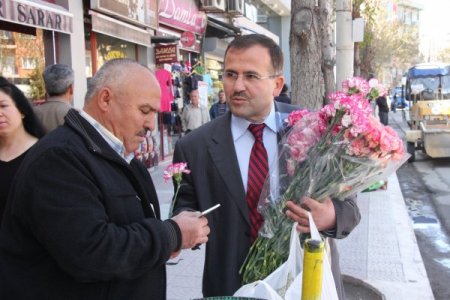 Burdur İl Müftülüğü'nün organizesi ile imamlar Kutlu Doğum Haftası münasebetiyle esnafa karanfil ve hadis kitabı dağıttı.
