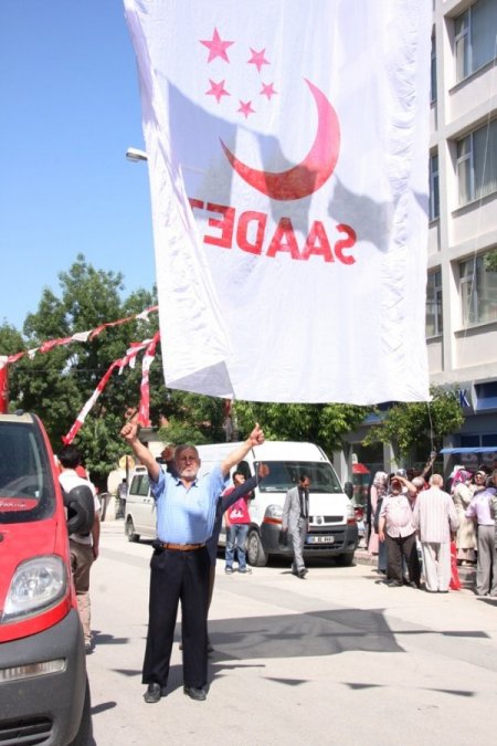 Burdur'da, Saadet Partisi (SP)'ne ait parti bayraklarının İl Seçim Kurulu kararıyla kaldırılması tepki çekti. Gazi Caddesi'nde basın açıklaması yapan SP İl Başkanı Süleyman Arslan, olayla ilgili sorumlu tuttuğu AK Parti’ye tepki gösterdi.
