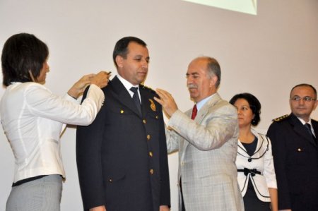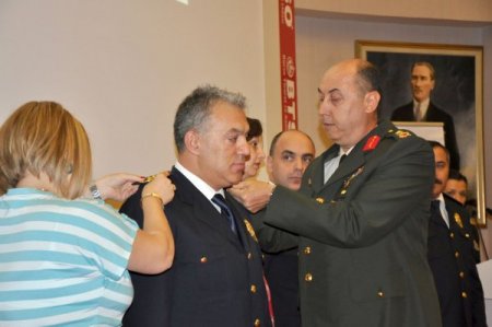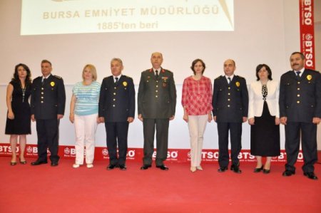 2. sınıf emniyet müdürlüğünden 1. sınıf emniyet müdürlüğüne terfi eden Bursa Emniyet Müdür Yardımcıları Arif Okçu, Bünyamin Gezer ve Bayram Coşkun, yeni terfilerini takmak için sahneye eşleriyle birlikte çıktı. 1. sınıf emniyet müdürlerine terfilerini Bursa Valisi Şahabettin Harput taktı. 2. sınıf emniyet müdürlüğüne terfi eden şube müdürleri Sezgin Kaba, Varkın Suyuak, Armağan Adnan Erdoğan ve Fahri Yıldız'a yeni rutbelerini Garnizon ve Jandarma Bölge Komutanı Teğgeneral Zeki Es taktı. Törende, komiserlikten 1. sınıf emniyet müdürülğüne terfi eden 60 polis şefinin rutbeleri takıldı. Terönde, polis şeflerinin aileleri de büyük heyacan yaşadı.