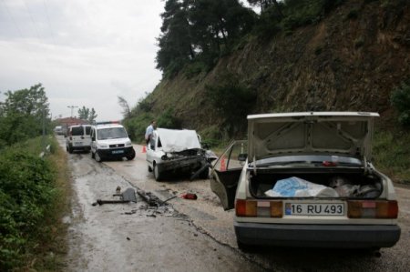 Bursa’da iki otomobilin kafa kafaya çarpışması sonucu 9 kişi yaralandı.