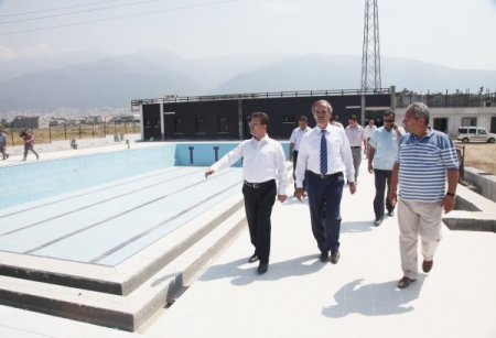 Büyükşehir Belediye Başkanı Recep Altepe, beraberindeki Genel Sekreter Yardımcısı Bayram Vardar ile birlikte Şahin Başol Spor Tesisleri’nde devam eden çalışmaları inceledi. Yüklenici firmanın sorumlularından çalışmalar hakkında bilgi alan Başkan Altepe, soyunma odalarından yüzme havuzuna, futbol sahasından spor salonuna kadar kompleks içindeki birimleri gezdi. İnşaatın tamamlanma aşamasına geldiğini ve son rötuşların yapıldığını dile getiren Başkan Altepe, “Bursa’yı öne çıkarmaya çalıştığımız kulvarlardan biri de spor. Bu hedef doğrultusunda tesisleşmeye büyük önem veriyoruz. Bugüne kadar projelendirdiğimiz, inşaatı süren ve tamamlanan tesis sayımız 99’u buldu. Şahin Başol Spor Kompleksi de bu tesisler içinde ayrıcalıklı olanlardan biri. Bu tesis de diğer tesislerimizde olduğu gibi amatör kulüplerin yanında 7’den 70’e spora meraklı tüm bölge halkına hizmet verecek.” dedi. CİHAN