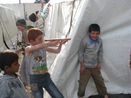 Türkiye'ye gelmeden önce Suriye'deki savaşa şahit olduklarını anlatan çocuklar, çadır kentte vakitlerini geçirmek için savaş oyunu oynadıklarını belirtiyor.