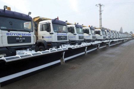 Ankara Büyükşehir Belediyesi, kar ve buzla mücadele filosunu güçlendiriyor. Fen İşleri Daire Başkanlığı bünyesinde bulunan 20 adet kar küreme ve tuz atma ekipmanlı kamyona, 20 adet kamyon daha eklendi. Kar ve buzla mücadelede kullanılan kürekli ve tuz atma ekipmanlı kamyon sayısının 40’a çıktığını belirten yetkililer, makine parkının güçlendirilmesine devam edileceğini kaydetti.