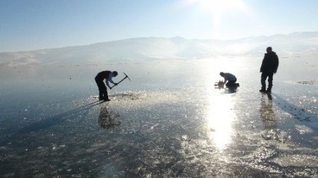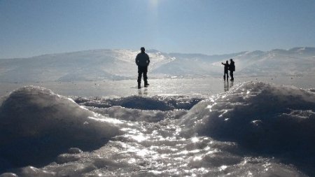 Ardahan'ın Çıldır ilçesi sınırlarında bulunan 124 bin metrekarelik alanıyla Doğu Anadolu Bölgesi’nin ikinci büyük gölü olan Çıldır Gölü’nün yüzeyi tamamen buz tuttu. Buz tutan göl doğal güzelliğiyle dikkat çekiyor. Buzların üzerine çıkıp hatıra fotoğrafı çeken vatandaşlar, göl üzerinde uzanıp poz vererek eğlenceli anlar yaşıyor. Çıldır Gölü'nün donmasıyla birlikte yüzeyinde oluşan cam görüntüsünü herkesin görmesini istediklerini belirten vatandaşlar, "Sanki donmamış gölün üzerinde yürüyormuşuz gibi bir his oluşuyor." dedi. CİHAN