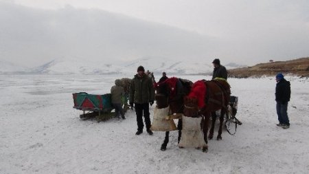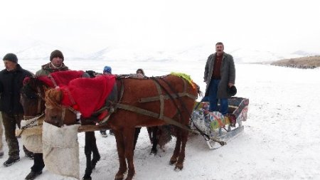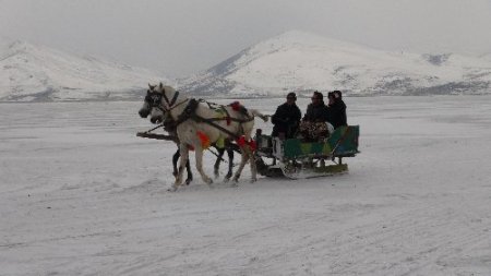Donan göl üzerinde atlı kızaklarla turistlere hizmet veren atlı kızakçılar ise tur başına 20 lira alıyor. Gölde 20 yıldır atlı kızak hizmeti veren Hakan Kılıç, sadece hafta sonu Çıldır Gölü’ne geldiklerini, az da olsa para kazandıklarını ifade ediyor.