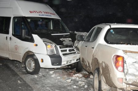 Tatvan’dan Bitlis'e yolcu taşıyan Teyfik Aktaş yönetimindeki 13 J 0172 plakalı minibüs, tipi ve buzlanmanın da etkisiyle direksiyon hâkimiyetinin kaybedilmesi sonucu karşı yönden gelen 61 DE 183 araçla çarpıştı. Çarpmanın etkisiyle her iki araçta da maddi hasar meydana geldi. Kaza sebebiyle ana yolda trafik bir süre aksadı. Kazaya karışan araçlar çekici ile yoldan kaldırıldıktan sonra aksayan trafik normale döndü.