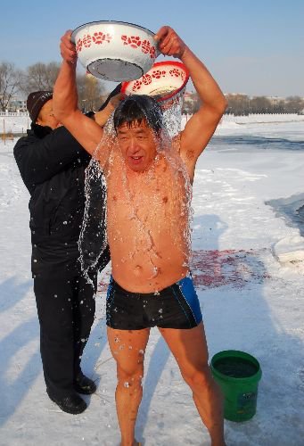 Eyaletin Mudanjiang şehrinde yaşayan Chen Kecai isimli Çinli, buzla kaplı kasanın içinde tam 122 dakika kaldı. Yerel medyanın haberine göre, 53 yaşındaki Chen 1989 yılından itibaren sürekli soğuğa karşı antrenmanlar yapıyor. Chen'in halk arasındaki adı ise 'soğuğa dayanan garip adam'