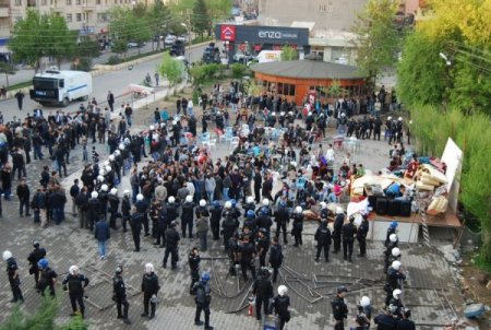 Batman’da dün gece kaldırılan BDP’ye ait çadırın tekrar kurulmasına izin verilmedi. Polis çadırın kurulacağı alanı ablukaya aldı. BDP Batman milletvekilleri Bengi Yıldız, Ayla Akat Ata, Belediye Başkanvekili Serhat Temel ve parti yöneticileri oturma eylemi başlattı.