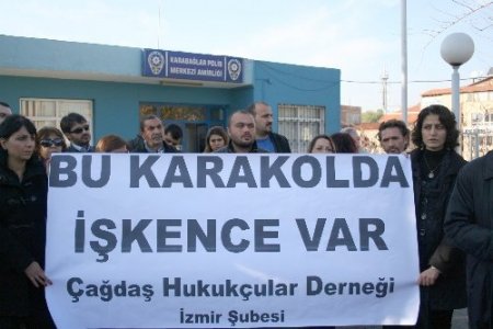 Çağdaş Hukukçular Derneği İzmir Şubesi üyeleri, Fevziye Cengiz'in Karabağlar Polis Merkezi Amirliği'nde darp edilmesini protesto etti. Karakolun önünde toplanarak slogan atan üyeler, "Bu karakolda işkence var" yazılı pankart açtı. Şiddeti protesto eden grup adına Dernek İzmir Şubesi Üyesi İmdat Ataş bir açıklama yaptı. Ataş, karakoldaki dayak görüntülerinin basına yansımasından birkaç gün önce İzmir İl Emniyet Müdürlüğü Güvenlik Şubesi'nde görevli polislerin, Karabağlar'daki Cumhuriyet Anadolu Lisesi önünde füze kalkanına karşı bildiri dağıtmak isteyen M.T. ve 18 yaşından küçük N.A.'ya da şiddet uyguladığını öne sürdü. Cengiz'e yargı sürecinde destek vereceklerini belirten Ataş, "Bu karakolda işkence var. Televizyonlarda, gazetelerde, sosyal medyada işkenceyi gördük. Ya görmeseydik? Bütün bunlar gösteriyor ki işkence münferit değil, genel bir uygulama. Polisler için önlemeye veya son vermeye değer bir şey değil." dedi. Savcıların işkence soruşturmalarında delilleri toplamadığını, toplananları da gözardı ettiğini öne süren İmdat Ataş, "Polisin tuttuğu tutanakları en güçlü delil kabul ediyor. Bu tür soruşturmalarda polisler hakkında soruşturmalar çok uzun süre alıyor ama mağdurlar hakkında derhal dava açılıp cezalar veriliyor. Tanıklar, baskı altına alınarak ifadelerini değiştirmeye zorlanıyor." şeklinde konuştu. İşkencenin sadece karakoldaki polisin yaptığı bir şey olmadığını dile getiren Ataş, "İşkence, cezasız bırakmaktır. Cezasızlık ise işkencenin devam etmesi demektir. İşkence, bir çarkın işlemesidir." dedi. Polisin geniş güvenlik tedbirleri aldığı eylem, açıklamanın ardından sona erdi. CİHAN