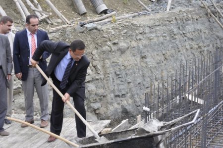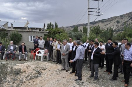 Kaymakam Ercan Öter, Belediye Başkanı Küçük Mehmet Yıldızlı ve ilhan Çelik, konuşmalardan sonra yurdun temeline ilk harcı döktü. Misafirler, törenden sonra inşaat alanını gezdi. CİHAN
