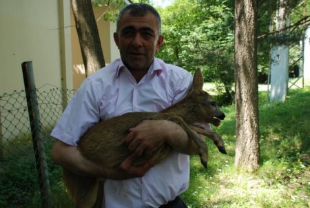 Bolu Dağı'nda ormanlık alanda çakalların saldırısına uğrayan bir buçuk aylık karaca yavrusu, Koru Otel’in tel örgüsünden geçerek, otelin bahçesine girdi. Koru Otel'in dış saha sorumlusu Zeki Temel, bahçede dolaşırken karaca yavrusu ile karşılaştı. Gözünden ve ayağından yaralanan karaca, uzun süren kovalamacanın ardından yakalandı.