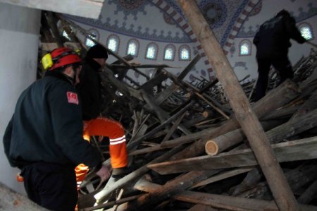 Samsun'un Salıpazarı ilçesinde yapımı devam eden Bereket Fatih Camii’nde kubbe süslemelerinin tamamlanmasıyla sökme çalışmaları başlatılan 20 metrelik iskele çöktü. Olayda iskele üzerinde çalışan 2 işçiden biri demir ve tahta yığınlarının altında kalarak yaralandı. Diğer işçi ise olaydan yara almadan kurtuldu.