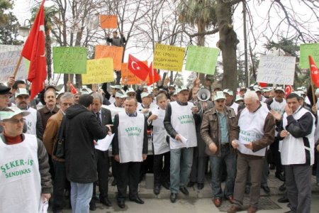 Polisin yoğun güvenlik önlemi altında slogan atarak açıklamada bulunan Şeker-İş Sendikası üyesi işçiler, kendilerinin yılda 4 ay çalışarak 1 yıl geçinmeye çalıştıklarını ve zor durumda kaldıklarını söyledi. Grup adına açıklamada bulunan Çarşamba Şeker-İş Şube Başkanı Sinan Türe, "2006 yılında çıkartılan 5620 sayılı yasa ile 6 ay ve üstü çalışan arkadaşlarımız kadrolarına kavuştular. Bu son derece sevindirici bir durum, bizler ise 120 gün çalıştığımız için kadro alamadık mağduruz." dedi. Türe, "Bizlerin talep ve isteği geride kalan geçici işçilere de kadro verilmesidir. Bu konuda gerekirse bütün zamlardan feragat etmek suretiyle her türlü sözleşmenin altına imza atmaya hazırız." şeklinde açıklamada bulundu.