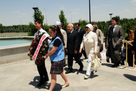 TBMM Başkanı Çiçek, Aşkabat temasları kapsamında Türkmenistan'ın kurucu Devlet Başkanı Saparmurat Türkmenbaşı'nın Kıpçak Camisi'nde bulunan anıt mezarını ziyaret ederek, çelenk bıraktı. Türkmenistan müftüsü ile merhum Türkmenbaşı için dua eden Çiçek, burada Orta Asya’nın en büyük camisi olan Türkmenbaşı Ruhi Camisi'ni de gezdi.
