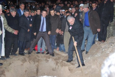 Acılı anne Sakine Akın ile şehidin yakınları Türk bayrağına sarılı tabuta sarılarak, uzun süre gözyaşı döktü. Şehidin cenaze namazını Ağrı Müftü Vekili Abdullah Eroğlu kıldırdı. Şehit Akın'ın Türk bayrağına sarılı tabutu, kılınan cenaze namazının ardından bir süre omuzlarda taşınarak köy mezarlığına götürüldü. Burada okunan dualarla cenaze gözyaşları arasında defnedildi. Defin işlemi sırasında Bakan Yıldırım'ın da duygulandığı görüldü. Yıldırım, şehidin babası ve aynı zaman köy muhtarı olan Mehmet Akın'ın elini uzun süre tutarak teselli etti.