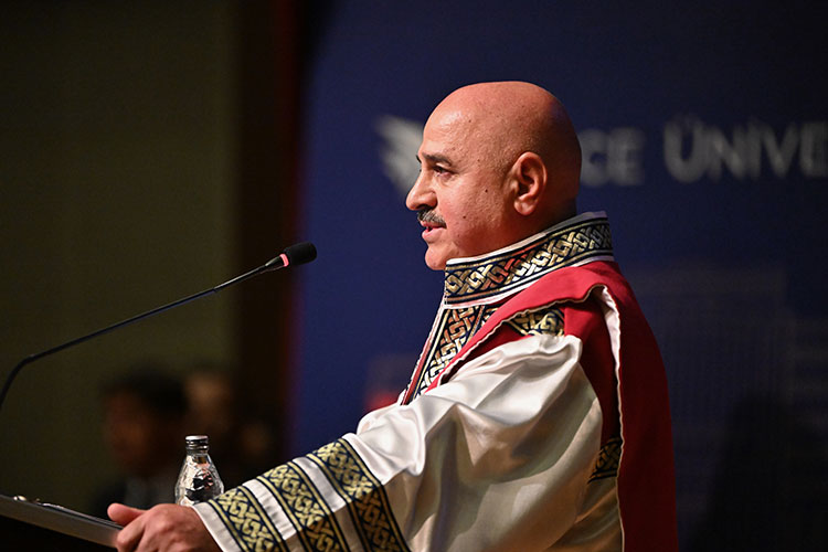 "Ahlaktan, hukuktan, merhametten, adaletten kopuk bilimin, teknolojinin hiçbir şeye faydası yok. İnsanlık değerleri olmadan, bunlarla birleşmeden bütün bu hususlar hiçbir anlam ifade etmiyor. Tam aksine bütün bu bilimsel veriler, teknolojik imkanlar, daha büyük katliamlar yapmak için kullanılabiliyor. Dolayısıyla bizim mutlaka bilgiyle, merhameti, adaleti bir araya getirmemiz gerekiyor. Gençlerimizin bunu en güzel şekilde yapacaklarına ve akademik kadronun da bu yönde en güzel ufku çizeceğine de inanıyorum."