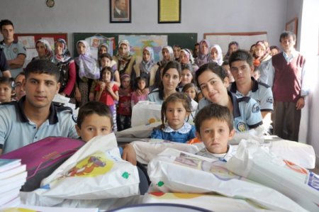 Emniyet Müdürü Halil Yılmaz ve beraberindekiler, okulun 17 öğrencisine yanlarında getirdikleri kırtasiye, giyim ve çeşitli oyuncaklardan oluşan hediyeleri verdi. Hayırsever firmaların da destek verdiği proje kapsamında hediyelerin bir kısmını ise çevik kuvvet personeli üstlendi. Canon marka fotokopi-yazıcı-tarayıcı makinesi, ilk yardım malzemeleri, okul önlükleri, diş macunu ve diş fırçası, çeşitli oyuncaklar ve hediyelik eşyalar, kırtasiye malzemeleri ve ihtiyaçlar çevik kuvvet personeli tarafından karşılandı. Hediyeleri alan öğrenciler mutluluklarını gizleyemedi. Öğrenciler, Halil Yılmaz’a teşekkür ederek derslerine çok çalışacaklarının sözünü verdi.