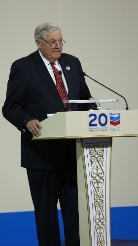 Chevron Yönetim Kurulu Başkanı John Watson ise yaptığı konuşmada Kazakistan Cumhurbaşkanı Nursultan Nazarbayev’e ve Kenneth Derr’e bu kutlamaya katıldığından dolayı teşekkür etti. Watson, şirketin ve ilişkilerin yirmi yıllığını sembolize eden bir heykeli Nazarbayev’e hediye etti.