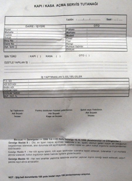 Yaşanan birçok hırsızlık olaylarında, iyi niyetli çilingirlerin kullanılması Emniyeti ve Anahtarcılar Odasını harekete geçirdi. Düzenlenen ‘Kapı/Kasa Açma Tutanağı’ olmadan hiçbir çilingir ev, işyeri, araç veya kasa kapısı açamayacak. Tutanak düzenlettiren kişi, açtırmak istediği yerin kendisine ait olduğunu ispatlamak için bir de kefil bulundurmak zorunda olacak. Kayseri Anahtarcılar ve Saatçiler Odası ile İl Emniyet Müdürlüğü’nün yaptığı ortak çalışmayla art niyetli kişilerin çilingirleri kullanarak kötü emellerine ulaşması engellenecek. Kayseri Emniyet Müdürlüğü Toplum Destekli Polis Memuru Çağlar Avşar, gurbetçilerden, ayrılmaya karar veren çiftlerden ve oto sahiplerinden kendilerinin izni ve bilgisi olmadan evlerinin veya arabalarının açıldığı yönünde çok sayıda şikayet aldıklarını söyledi. Kapı açma konusunda iyi niyetli anahtarcı esnafının kullanıldığını belirlediklerini kaydeden Avşar, “Gurbetçiler memleketlerinde olmadığı zamanlarda hırsızlık yapmak isteyen art niyetli kişiler çilingir getirerek kapıyı açtırıp amaçlarına ulaşabiliyordu. Bunun yanı sıra boşanmaya karar veren veya boşanarak ayrı evlerde yaşayan eşler anahtar değiştirildikten sonra çilingir getirerek kapıyı açtırıp eşyaları boşaltabiliyor. Aynı şekilde araçlarda da buna benzer sorunlar yaşanıyor. Bunların önüne geçebilmek için Kapı/Kasa Açma Tutanağı hazırladık. Kendilerinden ev, işyeri veya araç kapısı açmalarını isteyen çilingirler bu tutanağın doldurulmasını isteyecek. Aynı zamanda bir de kefil isteyecek. Açtırılmak istenen evin veya işyerinin kişiye ait olduğunu ve orada yaşadığına dair şahitlik yapacak. Aksi taktirde çilingirler açılması istenen kapıyı açmayacak.” dedi.Kayseri Anahtarcılar ve Saatçiler Odası Başkanı Mustafa Alan da, özellikle gurbetçilerin maruz kaldığı hırsızlık olaylarına karşı tedbir almak için böyle bir çalışma içerisine girdiklerini söyledi. Gurbetçilerden kendilerine çok sayıda şikayet geldiğine dikkat çeken Alan, “Anahtarcı esnafımız bazen art niyetli kişilerin oyununa gelmiş olabilir, ancak kesinlikle kasıtlı bir iş yapılmamıştır. Sadece vatandaşa yardımcı olma düşüncesiyle hareket edilmiştir. Bundan sonra hazırlanan tutanak sayesinde hem vatandaşlarımız mağdur olmayacak hem de esnafımız. Gurbetçi vatandaşlarımız yılın büyük bir bölümünde memleketlerinde olmadıkları için bu tür hırsızlık olaylarıyla karşı karşıya kalabiliyorlardı. Ancak bundan sonra alınan önlemlerle böyle bir olay yaşanmayacak.” açıklamasını yaptı. CİHAN