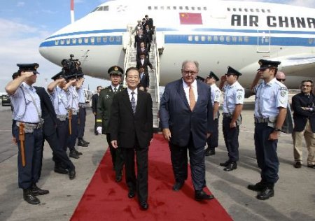 Çin Başbakanı Wen Jiabao, Yunanistan Başbakanı Yorgo Papandreu'nun resmi davetlisi olarak bu ülkeye geldi. Özel bir uçakla bugün Atina'ya gelen Wen, Yunanistan'a yapacağı resmi ziyarete başladı. Çin Başbakanı, Atina'da Yunanistan Başbakanı George Papandreou tarafından resmi törenle karşılandı. Wen, 24 yıllık aradan sonra Yunanistan'a giden ilk Çin başbakanı oldu.