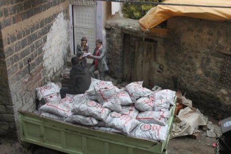 Cizre Kaymakamlığı, önceden tespit edilen ihtiyaç sahibi 13 bin 500 aileye kömür yardımı yapıldı. Sosyal Yardımlaşma Vakfı tarafından hazırlanan kömür yardımı muhtarların aracılığıyla traktörlerle evlere dağıtıldı. Kömür yardımının ailelerin kapısına gitmesi aileleri memnun etti. Cizre Sosyal Yardımlaşma ve Dayanışma Müdürü Celal Azgan, “İlçemiz merkez ve bağlı köylerimizde ikamet eden yardıma muhtaç olduğu, Sosyal yardımlaşma ve dayanışma vakfı tarafından önceden tespit edilen 13 bin 500 aileye, yakacak ihtiyaçlarını karşılayabilmeleri için aile başına 22 torba olmak üzere toplam 11 bin ton kömür dağıttık. Kömürlerin 11 bin ailenin ilçe merkezine, 2 bin 500 ailenin de köy ve beldelerde oturanlara dağıtıldı. Yardıma muhtaç vatandaşlarımızın ihtiyaçlarının karşılanmasına yardımcı olmak bizleri mutlu etmektedir." dedi.