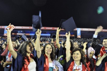 Öğretim üyelerinin öğrencilere diplomalarını vermelerinin ardından öğrenciler kep attı. Mezuniyet töreni, sanatçı Kıraç’ın konseri ve havai fişek gösterileri ile sona erdi. CİHAN