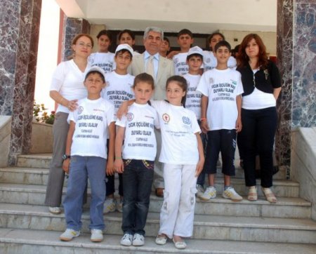 Batman'da çocuk işçiliğine karşı duyarlı olalım yazılı tişörtleriyle toplumsal mesaj veren çocuklar kurum ziyaretlerini sürdürüyor.