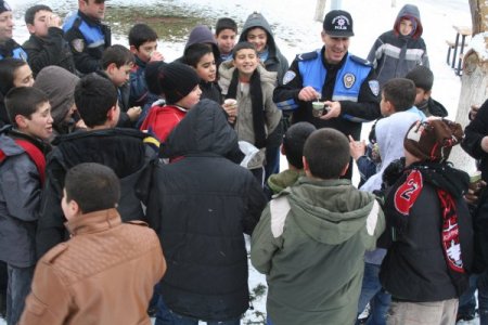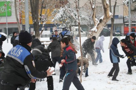 Çocuklarla oynayan polisler, yaptıkları kardan adama da polis şapkası taktı. Ardından, çocuklar ve ekipler arasında eğlenceli bir kartopu oyunu başladı. Vatandaşlar da oyuna dâhil olarak,, karın keyfini çıkardı. Polisler, oyunun ardından, soğuk havada sıcak çikolata ikramında bulundu.