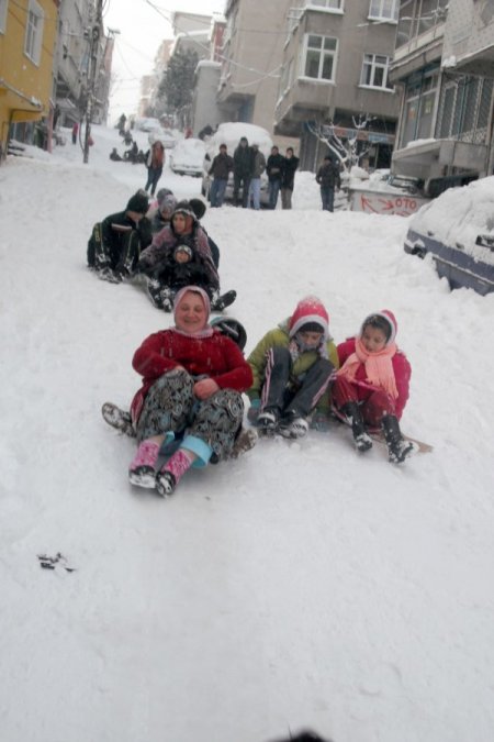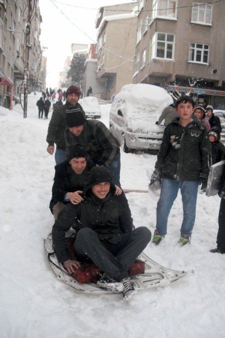 İstanbul’u etkisi altına alan ve günledir devam eden kar yağışı, kimileri için sorun olurken çocuklar ve onlara eşlik eden aileleri için eğlence kaynağı oldu. Kar tutan caddelerde yokuş aşağı ellerine geçirdikleri kaygan nesneleri kullanarak, karın keyfini doyasıya çıkardılar. Karın bütün nimetlerinden yararlanan çocuklar kardan adam yapıp birbirleri ile kartopu oynadılar. Çocuklar ellerine geçirdikleri poşet, tepsi, bidon gibi kaygan nesneleri kullanarak kayarken onlara aileleri de eşlik edince ortaya ilginç görüntüler yansıdı.