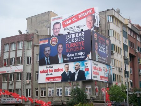Partilerin aynı binanın her iki cephesine asılan afişler, vatandaşların, AK Parti, CHP ve MHP 12 Haziran seçimleri öncesinde 'üçlü koalisyon kurdu' yorumlarına neden oldu.