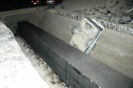 Köprü tabanına yeni dökülen beton üzerine düşen otomobilde ise maddi hasar meydana geldi. Çukura dik bir şekilde düşen otomobil görenleri hayrete düşürürken araç çekici yardımı ile çıkartıldı.