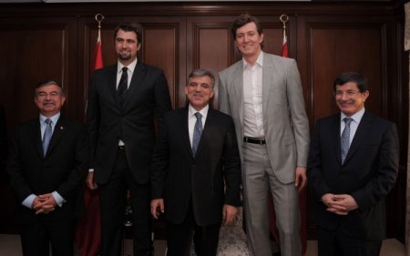 NATO zirvesi için ABD'nin Chicago kentinde bulunan Cumhurbaşkanı Abdullah Gül, zirve öncesi Amerikan Ulusal Basketbol Ligi (NBA)'nde oynayan milli basketbolcular ile bir araya geldi.