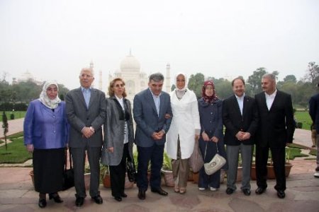 Cumhurbaşkanı Gül, Tac Mahal'in bahçesinin giriş bölümünde eşi Hayrünnisa Gül ve Hindistan ziyaretine eşlik eden bakanlar, milletvekilleri ve iş adamlarıyla fotoğraflar çektirdi. Tac Mahal'in bahçesinin orta kısmında yer alan mermer yükseltinin üzerindeki bankta da eşi Hayrünnisa Gül ile hatıra fotoğrafı çektirdi. Heyet üyeleri burada Cumhurbaşkanı Gül ile fotoğraf çektirebilmek için adeta birbirleriyle yarıştı.