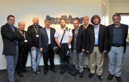 Dünyaca ünlü sosyal paylaşım sitesi Twitter'i dün ziyaret eden Abdullah Gül'ü CEO Dick Costolo, Kurucu Üyelerinden Jack Dorsey ve Türk çalışanlarından Aslı Sayitoğlu karşıladı.