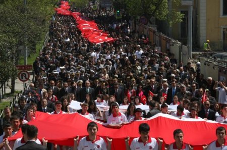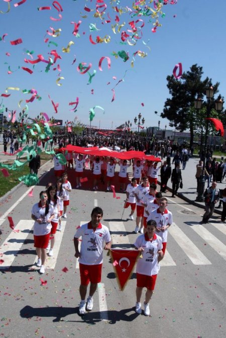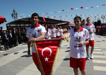 Sevgi Bayrağı'nı taşıyan ve ona eşlik eden diğer atletler ile birlikte 500 metre uzunluğunda Türk bayrağının öğrencilerin omuzunda İstiklal Caddesi üzerinde şehir turu atmaları vatandaşlar tarafından büyük alkış aldı.