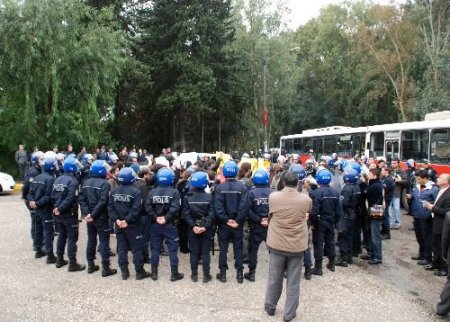 Üniversite yerleşkesi içindeki yurdun giriş noktaları Büyükşehir Belediyesi'ne ait üç otobüsle kapatıldı. Muhtemel bir yumurtalı saldırı karşısında üst düzey güvenlik tedbirleri alan polis, giriş ve çıkışları sıkı bir şekilde kontrol ediyor. Sabah saatlerinde düzenlenen eylemde Adana Emniyet Müdürlüğü'ne bağlı ekipler, öğrencileri sağduyulu bir şekilde hareket etmeleri konusunda uyardı. Yasalar çerçevesinde her türlü protestonun yapılabileceğini hatırlatan polis ekipleri, şiddete varan davranışlara müdahale edileceğini bildirdi. Onlarca polisin bekletildiği alanda sloganlar atan öğrenciler ise taleplerine yönelik Cumhurbaşkanı Gül'e bir mektup vereceklerini belirtti.