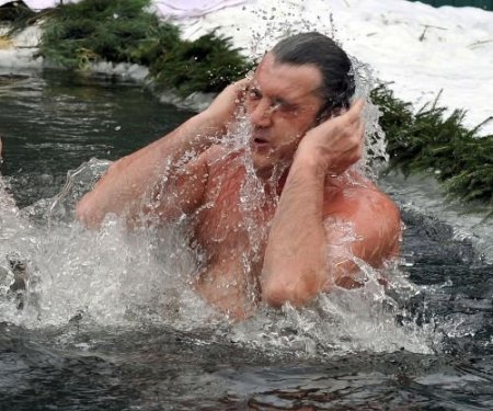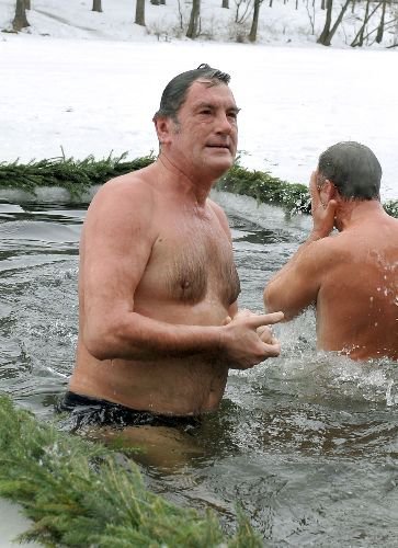 Yuşçenko'nun da vaftiz olduğu Hidropark'a akın eden on binlerce Ukraynalı genç ve ihtiyar buzları kırılarak yüzmeye elverişli hale getirilen nehre girerek vaftiz oldu.