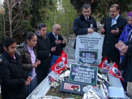 Geçtiğimiz yıl yaşamını yitiren Cumhuriyetin ilk kadın öğretmenlerinden Fatma Rafet Angın, Ortaköy'deki mezarı başında az sayıda öğrenci ve öğretmen tarafından anıldı. Anma törenine, Kağıthane Rafet Angın İlköğretim Okulu öğrencileri ve öğretmenleri ile yeğeni Sibel Günsür katıldı. Öğrenci ve öğretmenler, Angın’ın mezarına çiçek bırakıp dua etti.
