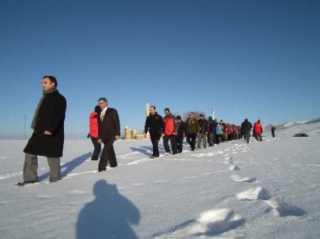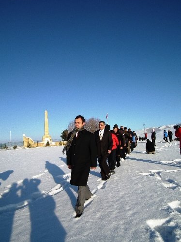 Sarıkamış’ın Allahuekber Dağları'nda 22 Aralık 1914 ile 15 Ocak 1915 tarihleri arasında yapılan Sarıkamış Harekatı sırasında çetin doğa koşulları ve düşmanla mücadelede şehit düşen 95 bin asker, Türkiye Dağcılık Federasyonu (TDF) tarafından Allahuekber Şehitliği'nde anıldı. Şehitleri anma yürüyüşüne, Türkiye Dağcılık Federasyonu Başkanı Alaattin Karaca önderliğinde 18 ilden 55 sporcu katıldı. Türkiye Dağcılık Federasyonu (TDF) tarafından bu yıl 14’üncüsü düzenlenen Geleneksel Allahuekber şehitlerini anma tırmanışı, Kars Sarıkamış Allahuekber Şehitliği'nde saygı duruşu ve İstiklal Marşı söylenmesi ile başladı. Türkiye Dağcılık Federasyonu Başkanı Alaattin Karaca, yaptığı açıklamada, ''Aldığımız bir kararla Türkiye'de anlam ve önem ifade eden günlerde bu tür anma tırmanışları gerçekleştiriyoruz. Bu tırmanışımız Allahuekber Şehitleri anma tırmanışıdır. Amacımız bu ülkenin birlik bütünlüğü uğruna hayatlarını feda eden büyüklerimize Türk dağcılığı olarak saygı ve şükranlarımızı sunmak. Gençlere de geçmişin bu kadar basit kazanılmadığını anlatmak.” dedi. Sarıkamış Kaymakamı Erdoğan Turan Ermiş ise yaptığı açıklamada, yürüyüş için gelen sporcuların büyük bir özveride bulunduğunu belirterek, ''Dağcılık federasyonuna bağlı dağcılık kulupleri bugün Türkiye'nin 18 ilinden buraya geldiler. Zor şartlarda buraya ulaştılar ve zor bir görevi yerine getiriyorlar.'' diye konuştu. Ermiş, Sarıkamış’ın ne kadar soğuk olduğunu anlamak için burada 15 dakika beklemenin yeterli olduğunu da ifaderek şunları söyledi: ''Şehitlerimiz -25 derecelerde geceleyin bizlerin geleceği, huzuru, refahı için özgürlüğü için canlarını hiç çekinmeden 3500 metre yükseklikte feda ettiler. Yaptıkları fedakarlık güneş gibi önümüzü aydınlatıyor. İnşaallah onların bu fedakarlığı bizde öyle bir azim kuvvet oluşturacak ki ülkemizin geleceği adına bize güç ve kuvvet verecektir.Ülkemizin muasır medeniyet yolunda ulaşmaya çalıştığı hedefe giden yolda hiçbir zaman terettüt göstermeyecektir. Sizleri Türkiye Dağcılık Federasyonu olarak, 8 Ocak Pazar günkü, 'Kızılçubuk Türkiye Şehitlerine Yürüyor' adlı yürüşe davet ediyorum. Her yıl buraya geliyorsunuzdur hepinize teşekkür ediyorum. Buradaki amacımız şehitlerimizi anmak buradaki şehit sayısının hiç önemi yok bir kişi bile olsa hayatlarını bizler için bu topraklar için feda etmişlerdir, onları unutmamak hayırla yad etmek bizim görevimizdir. Sizin buraya gelmeniz bize her zaman güç verir destek verir katılan tüm dağcılık kulüplerine teşekkür ediyorum.'' Ermiş, Türkiye Dağcılık Federasyonu Başkanı Alaattin Karaca’ya ”Türkiye Şehitlerine Yürüyor” yazılı atkı ve bere hediye etti. Sarıkamış Belediye Başkanı İlhan Özbilen ise yaptığı açıklamada, ''Bu topraklar için canını veren şehitlerimizi anmak için gelecek nesillere aktarmak için asli görevimizin bu olması gerekir. Allahuekber Dağı'na çıkdığınız zaman şehitlerimizin canlarını seve seve vermelerini ve Türk insanının vatanı ve milleti için neleri göze aldığını daha iyi anlıyorsunuz.'' şeklinde konuştu. CİHAN
