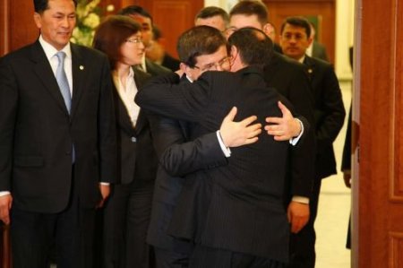 Kazak mevkidaşı Saudabayev ile de görüşen Davutoğlu, dışişleri şeref defterini imzaladı. Heyetler arası görüşmenin ardından iki ülke arasında ikili işbirliği ile afet ve istatistik konularında anlaşmalar imzalandı.